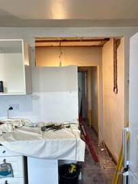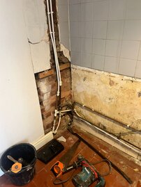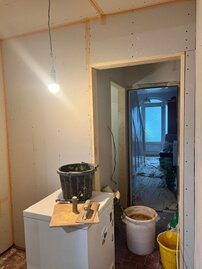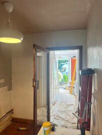 At Harrison Building Services we were entrusted to this commission of redesigning the downstairs layout to accommodate a downstairs cloak room. This work is shown on each of the following slides. Each slide is a different stage of the work.