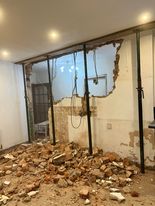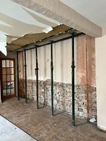 This section is of a pub conversion recently carried out by Harrison Building Services, Phase 1 was the marking out and removal of areas and walls, showing the number of support acrow props required prior to fitting large and long steels to support the upper floors. The pictures are not in any particular order of the work being carried out. Phase 2 was the putting things back in place after the fitting of the steels and of the plasterboards etc. Note the very nice style windows fitted and the space it all made after completion.