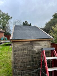 This is just one of those nice jobs that saves the customer a lot of money replacing the shed/wendy house. If the roof felt is replaced as soon as it starts to leak, normally from old age, it can save the roof from rotting and creating even more expense.