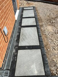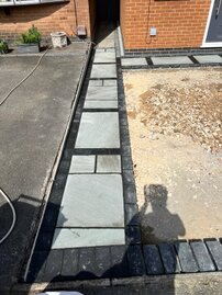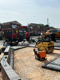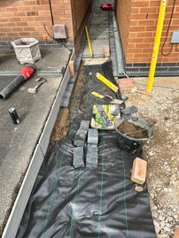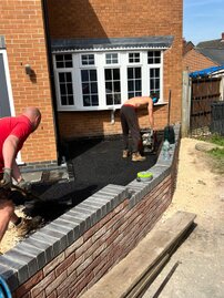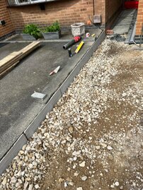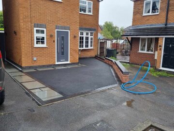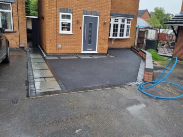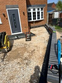 The following sliders are a snapshot of a driveway that was prepared by ourselves and finished off by using a professional tarmac laying company. I have a personal interest in the finishing touches to this job, because I built the small extension on the front and side elevations, as well as laid the rear patio etc. Each slider is a continuation of the story.